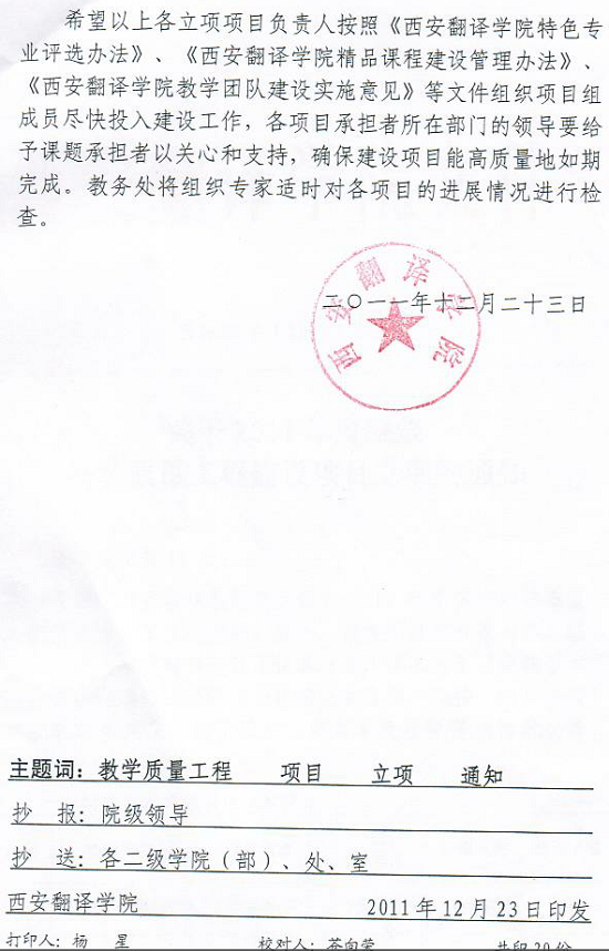 2011年12月23日,由我校工程技术学院电子商务专业被评为院级教学质量工程建设项目。