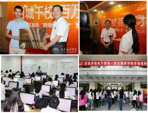 在“互联网+”、“大众创业、万众创新”、“一带一路”、跨境电商等国家战略提出与大数据、云计算、物联网等新技术的时代背下,2015年6月28日,我校作为西北首家与阿里巴巴网络技术有限公司合作了“百城千校,百万英才”跨境B2B电子商务人才培养计划培养项目。企业派出有经验的教师模拟跨境电商的全过程,利用双休日进行实战培训,参训学生全部拿到了结业证和初级跨境电商资格证。先后有2100多名2012级电子商务、国际贸易、商务英语等专业学生通过在线学习,获得阿里巴巴跨境 B2B初级人才认证。