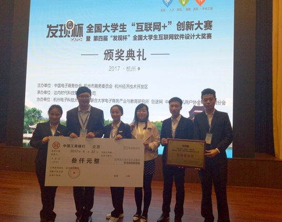 为贯彻落实国家“互联网+”战略,营造互联网创新人才培育的环境,由中国电子商务协会与杭州市商务委员会、杭州经济技术开发区共同举办的2016年全国大学生互联网+创新大赛暨第四届发现杯全国大学生互联网软件设计大奖赛,经过指导老师辛勤努力、同学们的认真准备,于2017年3月18日西部赛区传来佳讯,我校学子荣获一等奖1项,二等奖5项,三等奖8项的好成绩,10名老师荣获优秀指导教师,西安翻译学院荣获最佳院校组织奖。