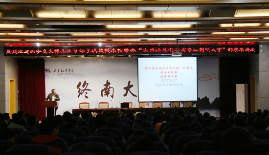 讲座由工程技术学院教学副院支侃买主持,会议开始之前,支副院长就我校承办第七届全国三创赛陕西省决赛做了充分的说明,鼓励全体同学们积极响应国家提出的“大众创业、万众创新”的号召,积极参与各类学科竞赛及大学生创新创业项目申报活动,参加讲座的教师有工程技术学院电子科学系、基础科学系青年教师及电子商务专业的360多名学生。